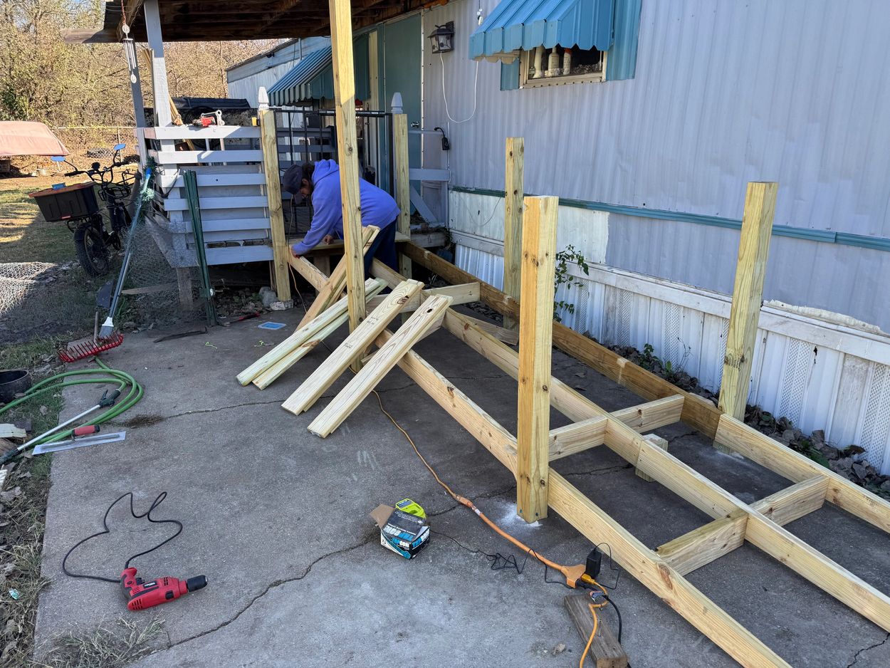 Richard working hard laying the deck on the ramp. He was a great help.